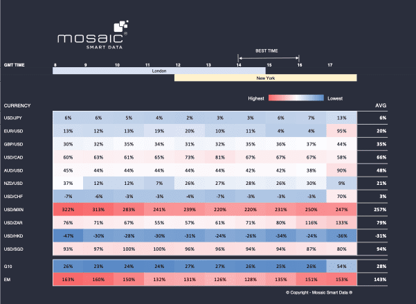 FXLIQUIDITY harnesses CLS’s robust, aggregated FX market data, MUFG’s aggregated FX order book data and Mosaic Smart Data’s advanced analytics software.